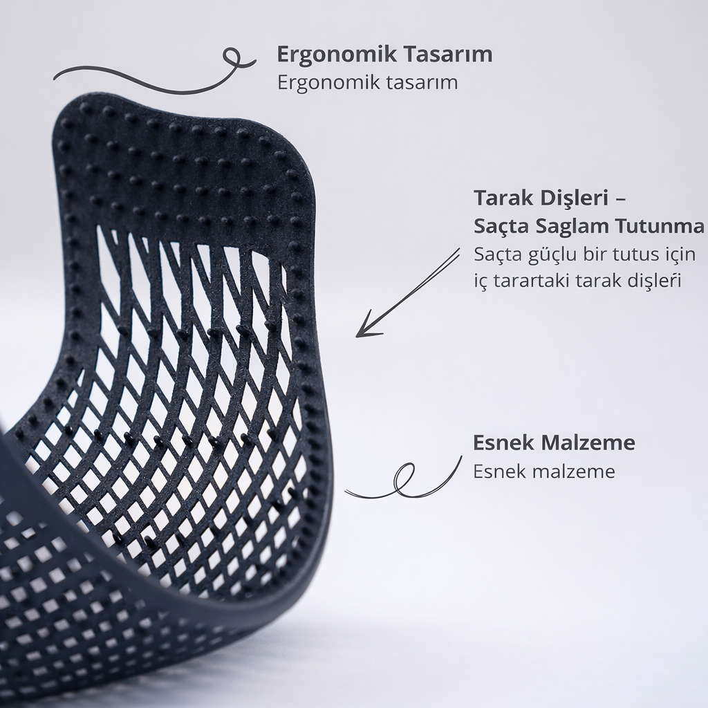 Saçı çekmez, baskı yapmaz ve baş ağrısına neden olmaz. Hafif yapısı sayesinde gün boyu konfor sağlar.